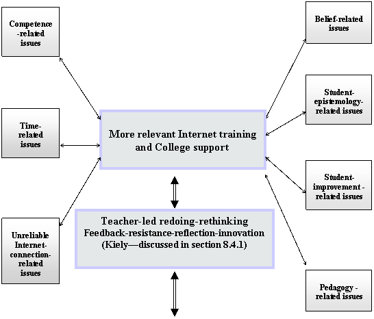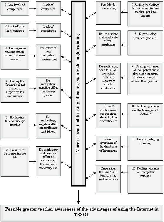 Figure 7 The central relevance of training and support orientated towards ESOL-Internet pedagogical development