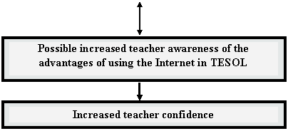 In figure 7 below it is posited that sine-qua-non pedagogical development lies at the heart of Internet ESOL use. The supposition is that key competence training should proceed training orientated towards pedagogical development; however some competence issues (i.e. as outlined in figure 5) may require ongoing training/support. The figure highlights the multifaceted nature of training and support orientated towards pedagogical development; it also links such development to outcome (increased ICT confidence) and evidences that pedagogical development may be the immanent principle of Internet use.