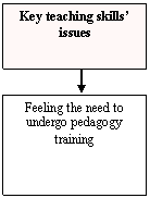 The four points with their sub-points discussed below are the key issues associated with pedagogy that arose from the data, they relate to (1) teaching skills’ issues, (2) materials’ issues, (3) learner needs’ issues, (4) physical environment issues. They are applicable mainly to Table 2. In figure 8 below it is held that more specific Internet pedagogy training and support is required to deal with the issues. The gamut of pedagogy issues advances the claim that pedagogy training is a consequential and intricate area that may also involve a consideration of teachers’ beliefs. Figure 8 resonates with Veen (1993) cited in Jones (2004:10) who states that pedagogy training is essential for the successful implementation of Internet usage and training courses that lack pedagogical aspects are likely to be unsuccessful.