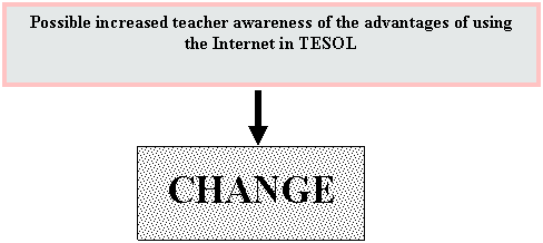 This study therefore dealt with the challenges of using the Internet in ESOL lab classes. As using the Internet in TESOL in the Intercollege language lab was an innovation, there was a need to become more aware of the issues; this underlying professional-development aim was therefore reflected in the global research aim. In the study the global research aim was to describe and interpret the key issues six Intercollege ESOL teachers faced over a five-to-seven month period using the Internet in TESOL. The global research aim also had two associated strands: firstly, to analyse how and/or why such issues affected teacher awareness of using the Internet to teach ESOL in the language lab and secondly, to determine how such issues might be addressed. None of the teachers that took part in this research had used the Internet in TESOL in a language-lab environment to any major degree before or had had any related pre-service training. The teachers in the study were given well-known ESOL Internet sites (available on http://www.englishlab.intercol.edu/papers/esol.htm) to assist them with using the Internet.